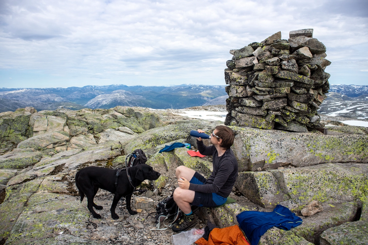 Olsskavlen er det høyeste punktet i Voss kommune. Du kan se både Hardangerjøkulen og Folgefonna. Skriv navnet i boken og nyt utsikten.