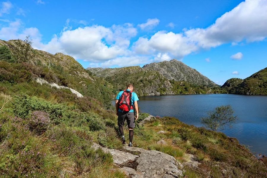 Gå videre på ryggen mot venstre side av Ravatnet. Nedstigning til Kløv er noe bratt. Her må du være forsiktig, spesielt på de glatte steinene. Alternativ kan du følge Klovfjellet stien å gå rundt på venstre side.