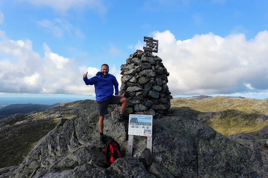 På toppen av kan du nyte Stords flotteste utsikt. Skriv navnet i boken å gå bort å se på den flotte DNT hytten som stod ferdig i 2022.