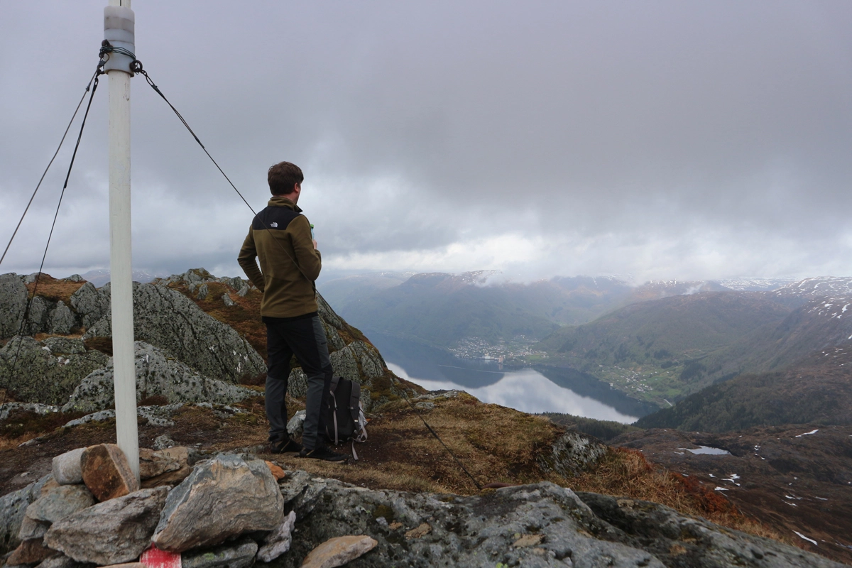 Det er ingen tradisjonell varde eller bok på toppen. Kun en gammel merke anordning. Utsikten ned mot Vaksdal og Sørfjorden er flott. Om du følger ryggen ca. 100 meter lengre nordover får du ennå bedre utsikt.