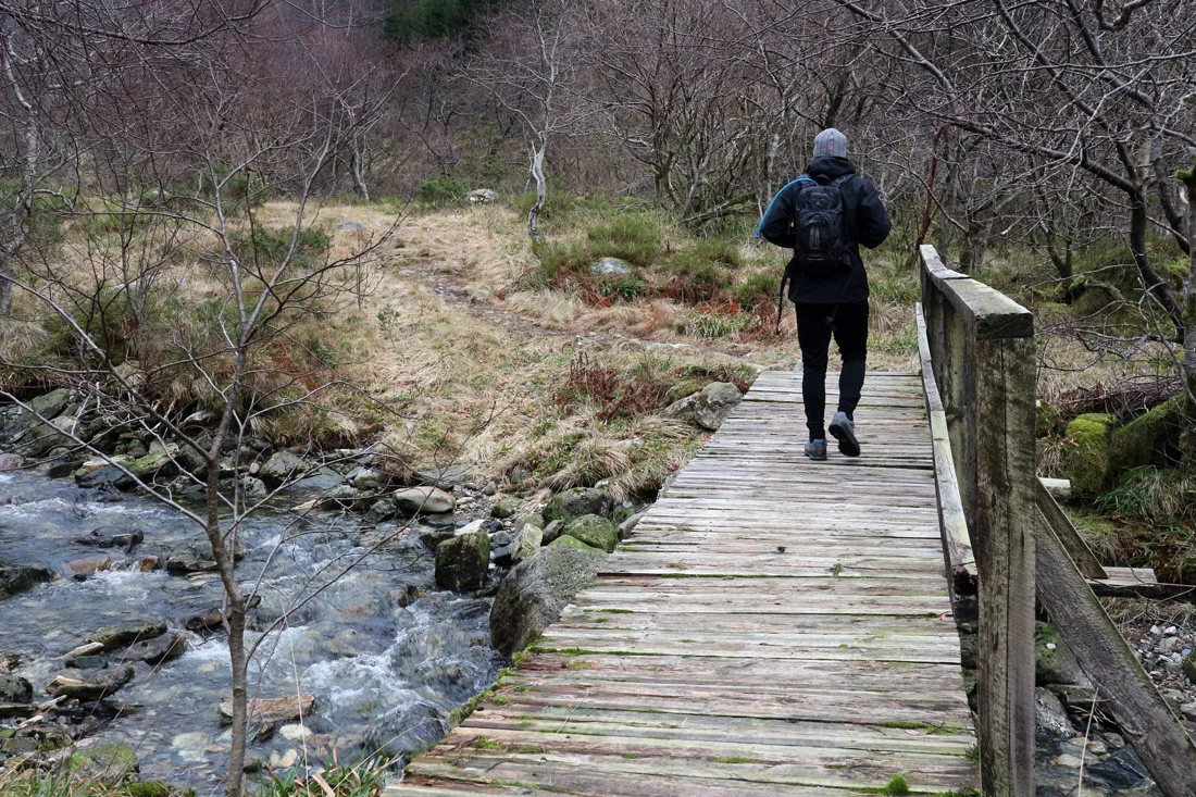 Turen fra Hausdalen starter på parkeringsplassen. Følg stien til venstre. Du skal IKKE krysse broen. Turen går først på traktorvei gjennom skogen og noen steder krysser du elven over bro. Når du kommer lengre opp i dale går det over til sti. Det er jevn stigning hele veien med en del bratte partier. Hele turen gå gjennom en dal og siste bakke opp før det flater ut og du kan se redningshytten er virkelig bratt. Her er det lurt å trø litt varsomt pga en del løse steiner.