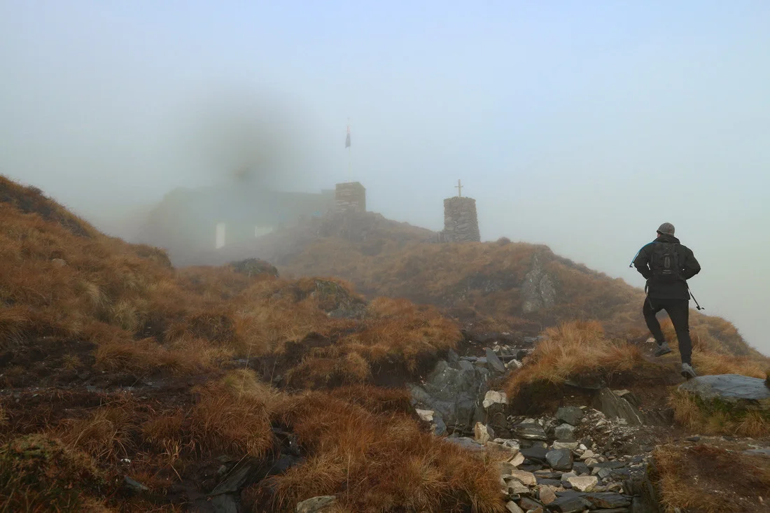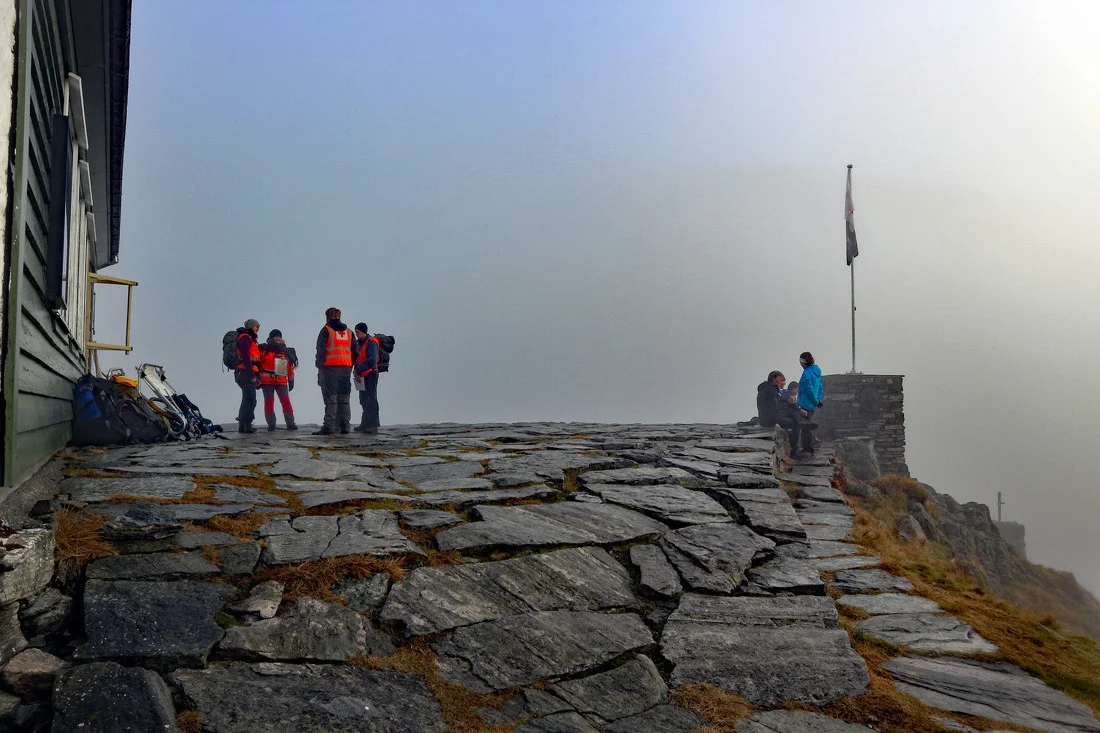 Det er fint å sitte utenfor Redningshytten. Er det dårlig vær kan du spise maten inne. Ønsker du å gå lengre tur anbefales å følge varderekken videre til Gullfjelstoppen (Nordpolen).