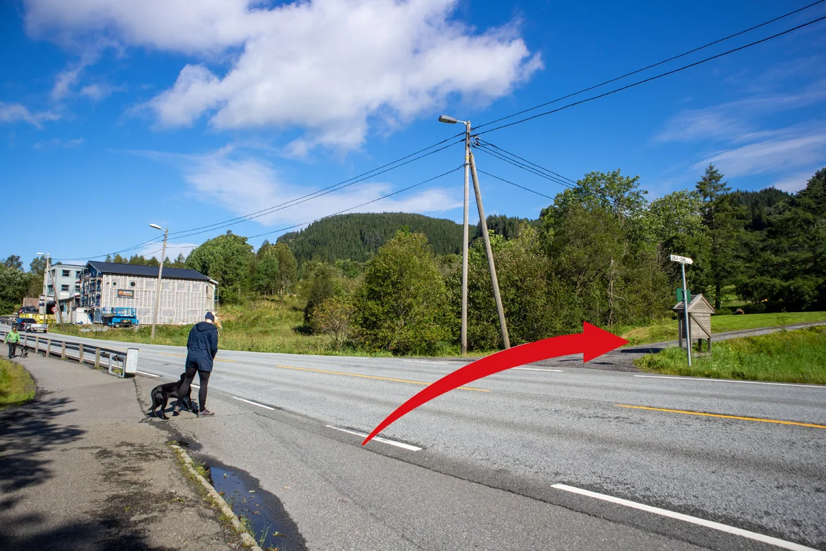 Fra parkeringen ved KIL hallen følger du fortau langs Osvegen retning Nesttun. Like før Sandven krysser du Osvegen. Pass på for her er det ikke er fortau. Følg sideveien ved Nedre Sandven gjennom gårdstunet. Like forbi er det skiltsom viser tursti til høyre og deretter til venstre. Gå den lange bakken opp mot Stego. Når du kommer til kryss nr. 2 går du til høyre skiltet "Orretua". Følg grusvei opp til Gavlen forbi Stego Grinda.