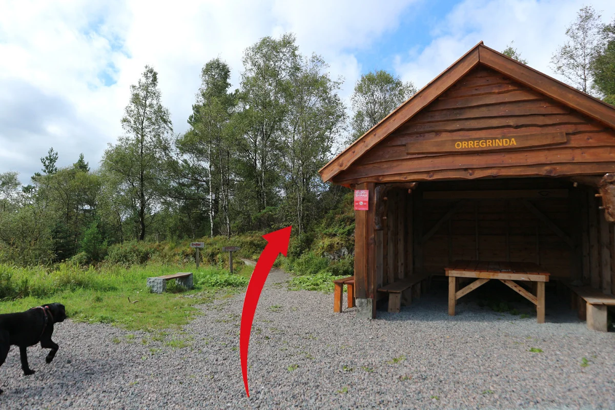Like bak Orregrinda går det sti skiltet "Orretua". Følg denne til Orretua" hvor det er både varde og postkasse m/bok.