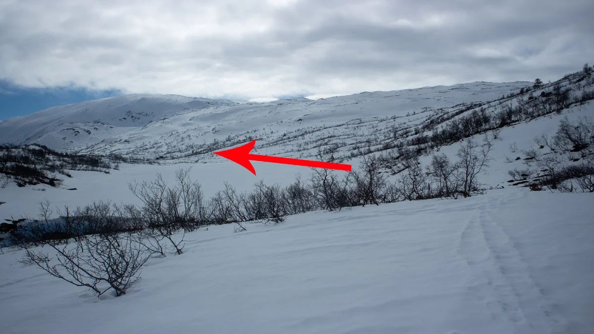 Gå ned bakken og over broen. Følg veien ca. 100 meter og gå til venstre ut på myren. Følg høyspentmastene ca. 300 meter til enden av myrene. Om du er heldig går det snøscooter spor du kan følge. I enden av myren går det vei gjennom skogen sikk sakk opp skråningen. Veien blir tydeligere etter hvert som du kommer opp i høyden.