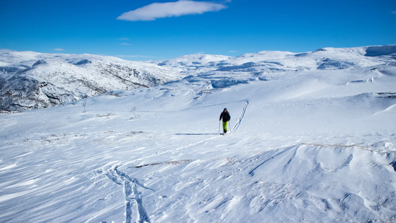 Spenn på skiene og følg anleggsveien ca. 300 meter innover i dalen. Like ved broen går du til høyre opp skråningen.