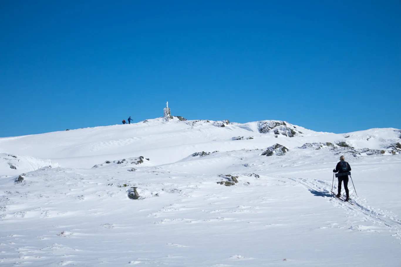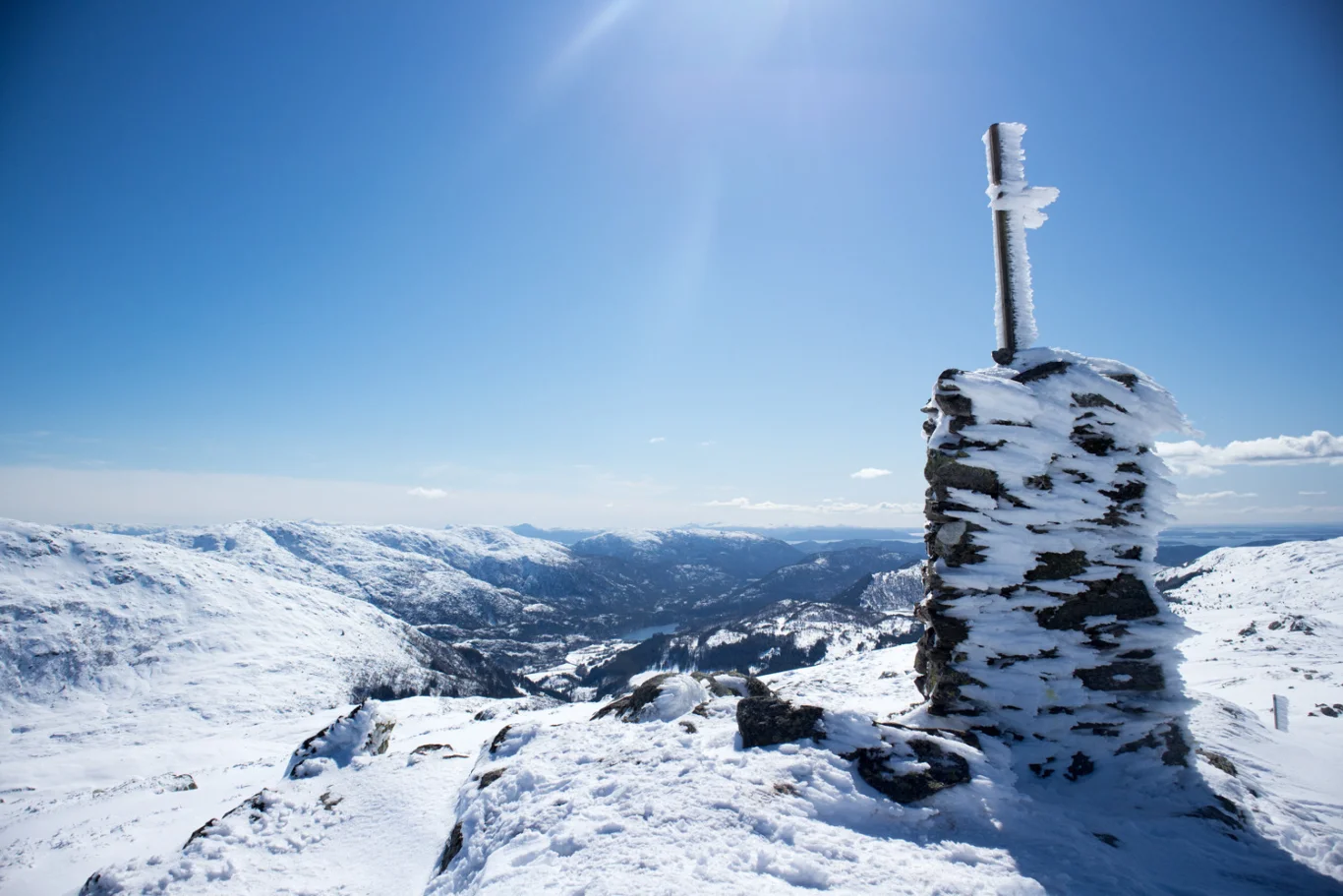 Fra toppen kan du følge samme veien ned eller du kan følge varderekken videre innover mot Austefjellet.