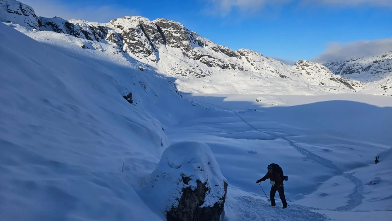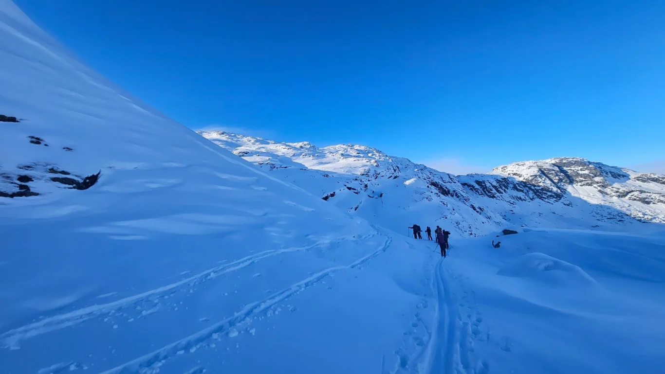 NB: Denne skituren går utenfor kvistet løype, over islagte vann og enkelte steder i skredutsatt terreng. Gjør derfor gode vurderinger ut fra vær- og vindforhold.