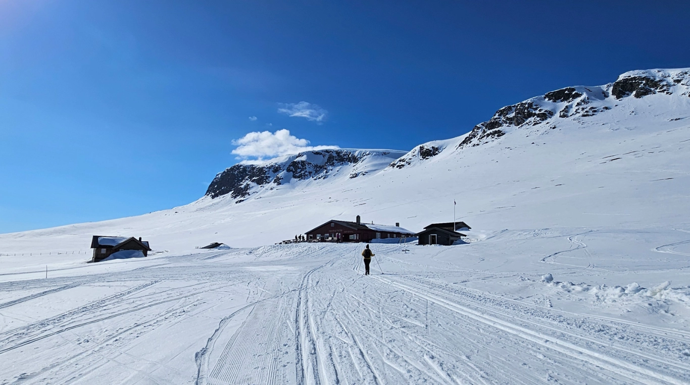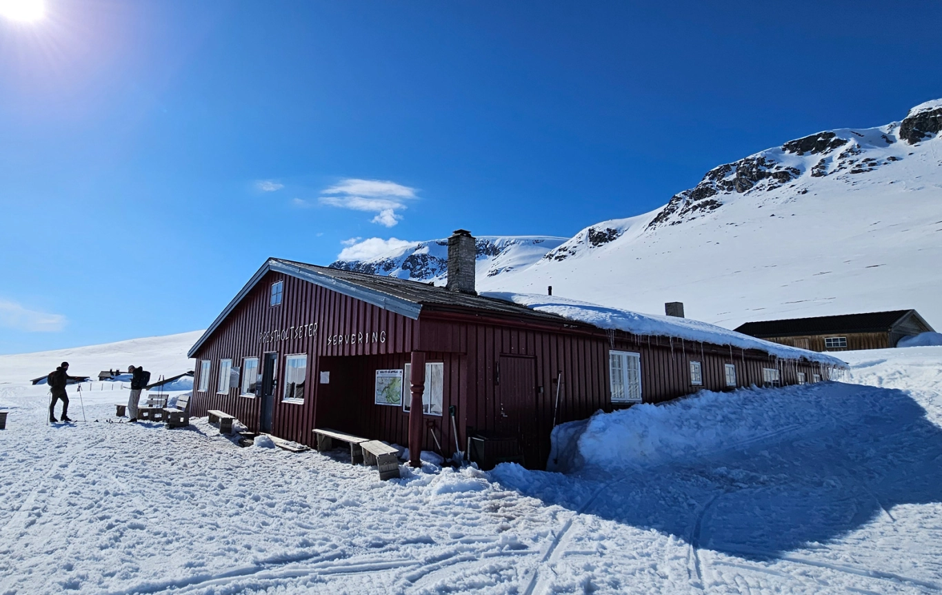 Halne Fjellstugu (1140moh) ligger langs hovedveien som går over Hardangervidda.