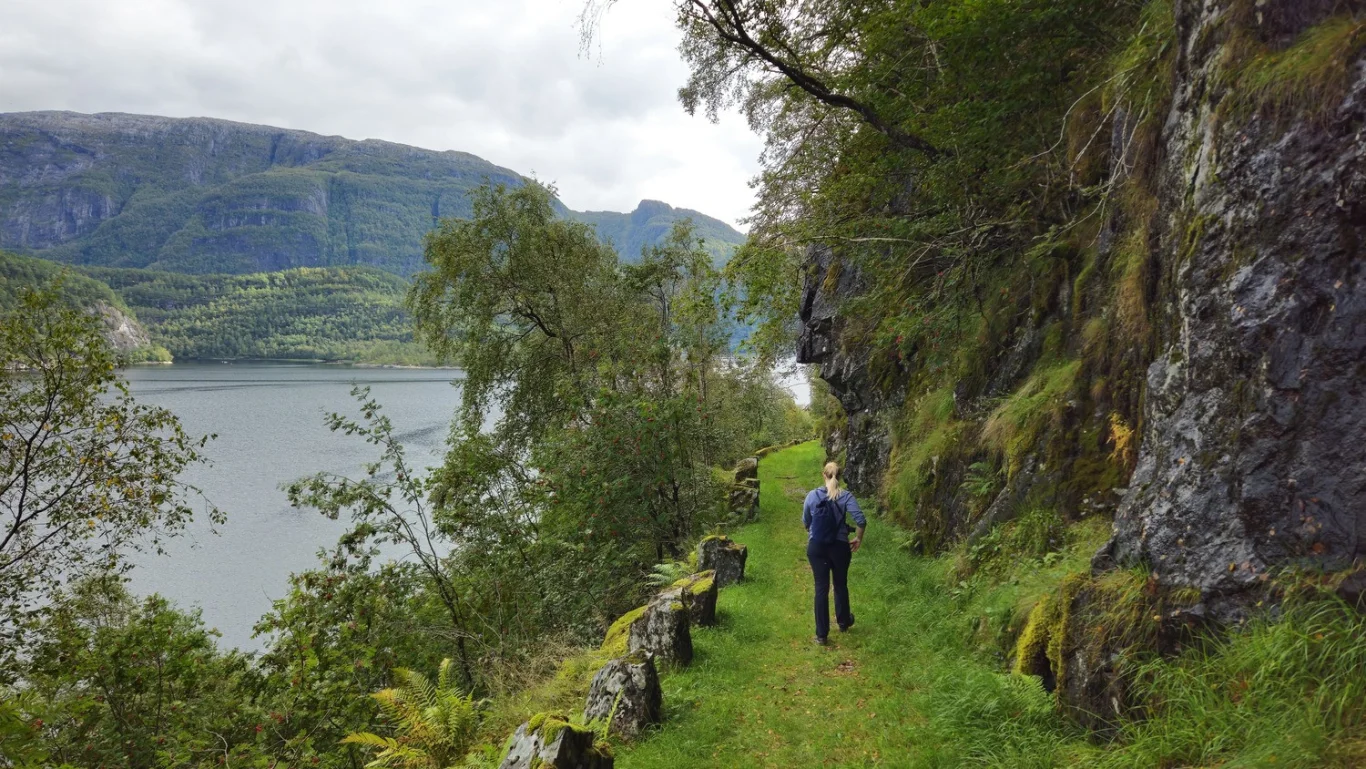 Med hele 1727 stabbesteiner slynger denne unike veien seg fra Blomdalsleitet og turlagshytta på Træet, helt ned til den idylliske fjorden ved Grøtto.