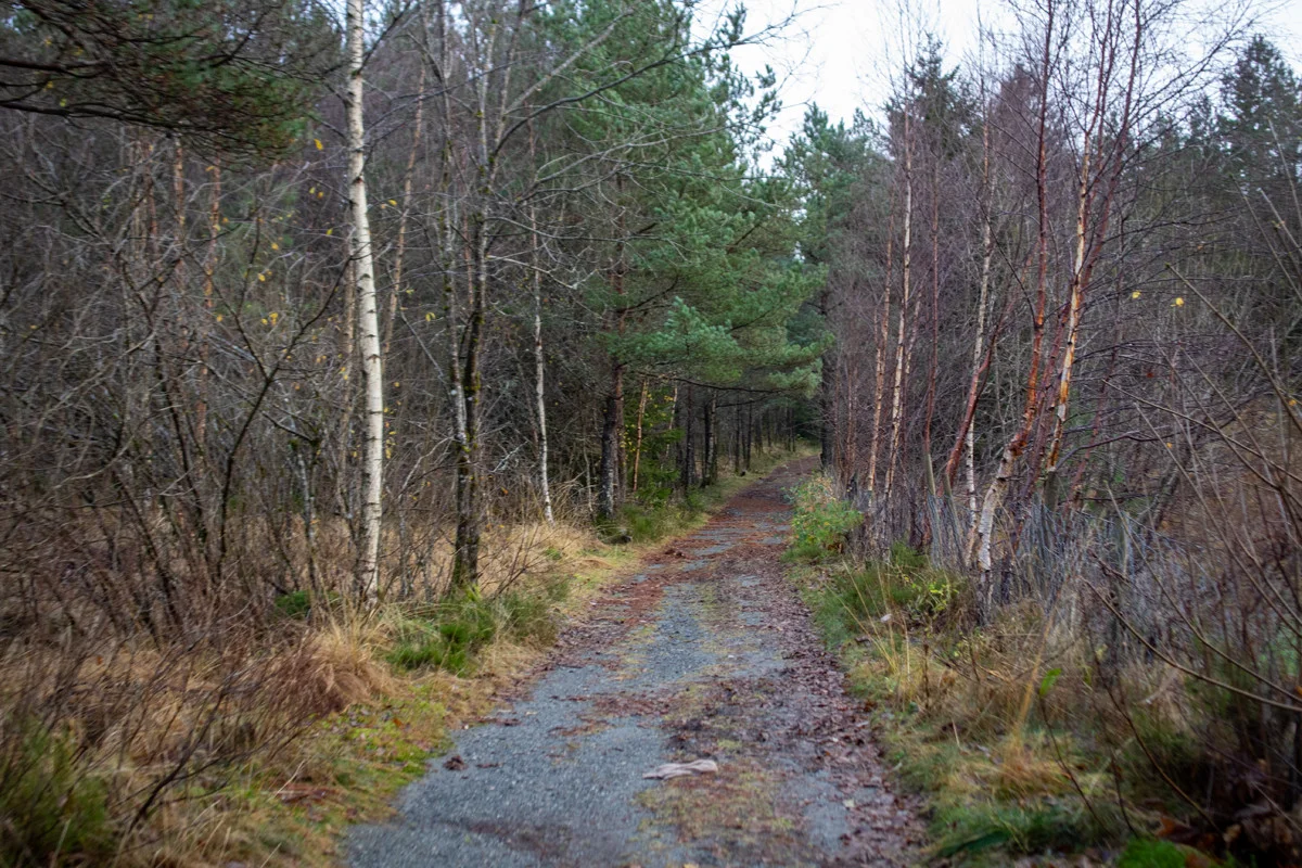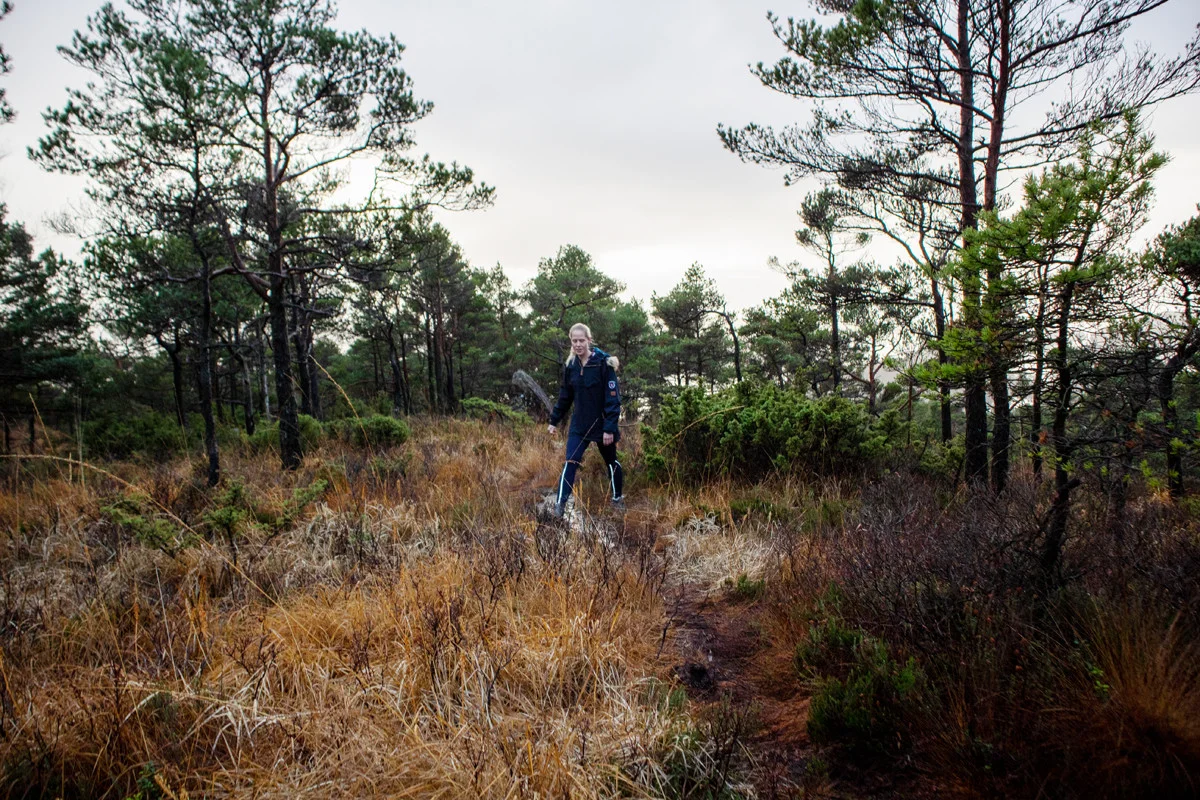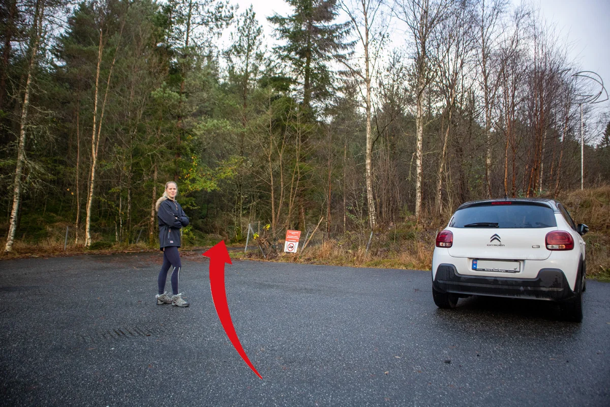 Fra parkeringen ved Nordvik skole går du grusveien innover (venstre side av fotballbanen).