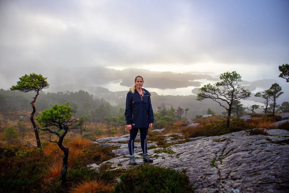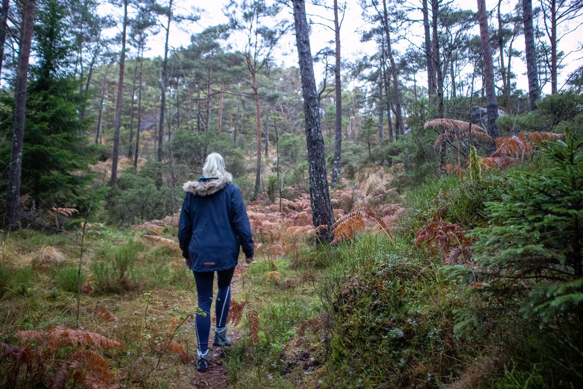 Etter noen hundre meter går det en tydelig sti inn til venstre. Gå inn på denne og følg den oppover. Du kommer til et nytt stikryss lengre oppe. Her skal du gå til venstre over myren. Følg deretter stien til toppen. Det er ingen varde på toppen, men utsikten over Lysefjorden og Lysøyen er fin.