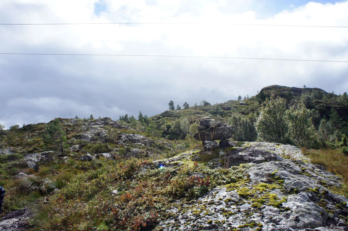 Gå samme vei tilbake. For lengre tur kan du gå videre via Grønafjellet og videre nedover innpå stien fra Mehammersåto mot Fitjar.