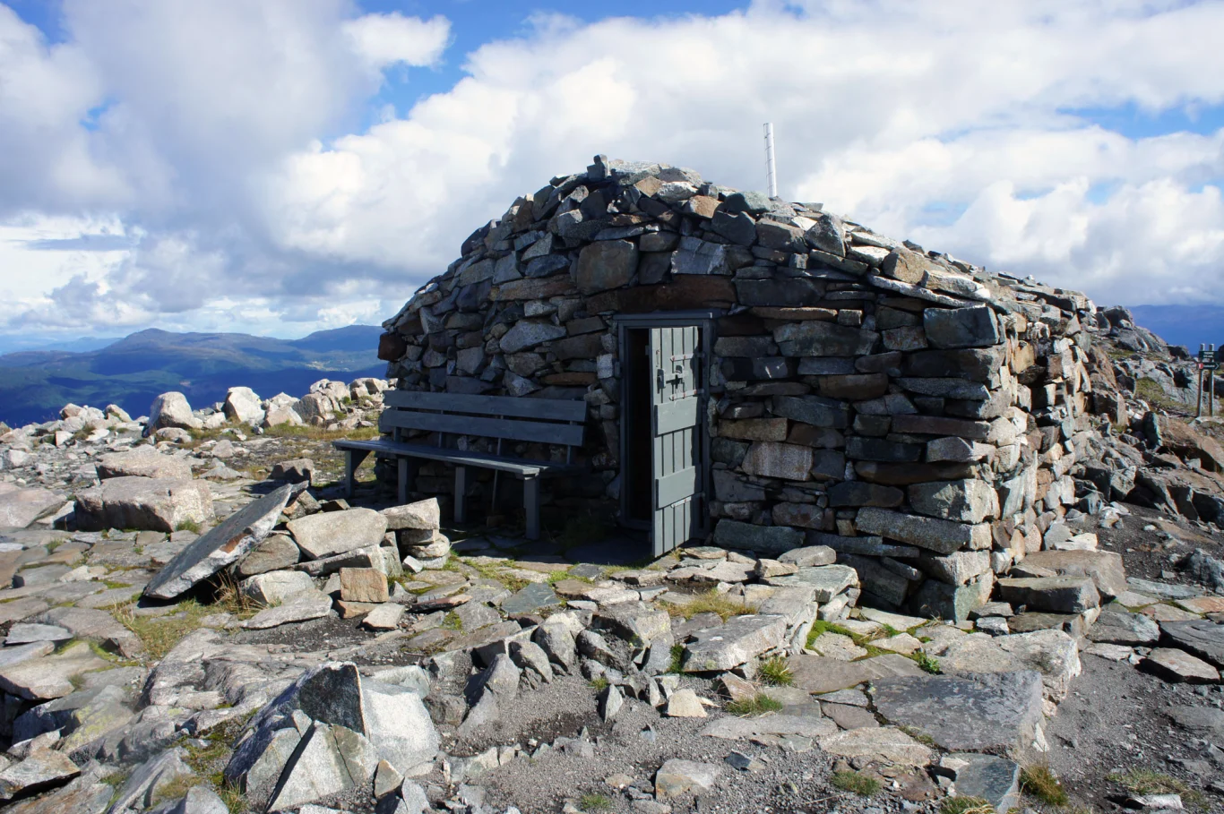 På toppen er det en varde med bok. Her ligger også Tindaslottet. En flott steinhytte hvor du kan overnatte. Fra toppen har du 360 grader utsikt over hele Sunnhordaland.