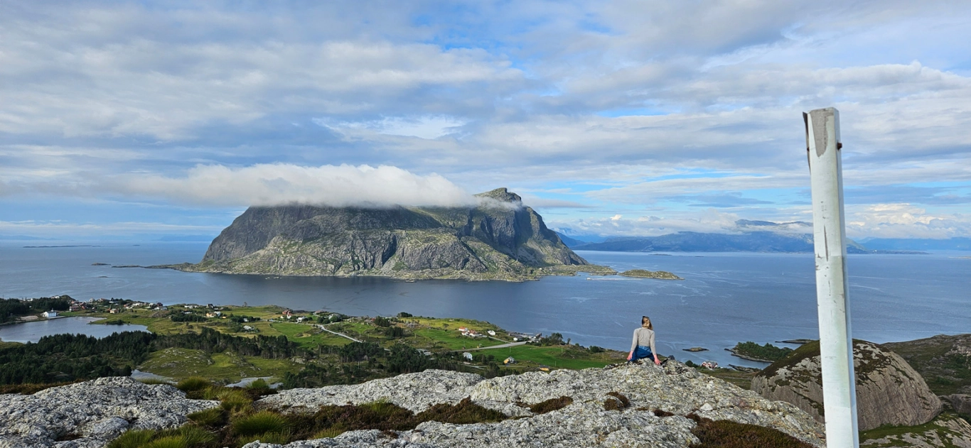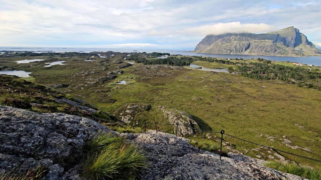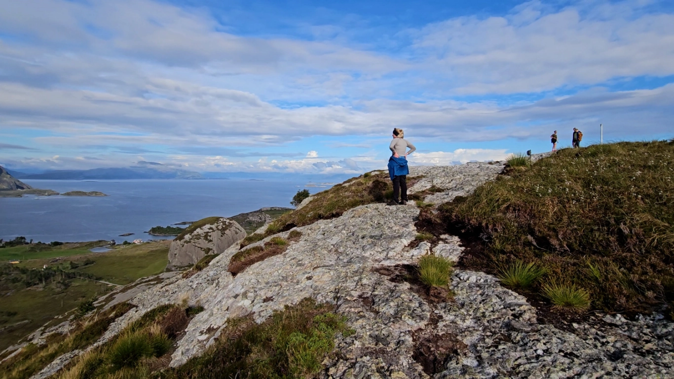 På toppen er det en postkasse og flott utsikt. Du kan se bort på Alden og tilbake mot Askvoll, hvor fergen kommer fra. Hvis du går et stykke vestover på toppen, får du panoramautsikt utover mot Værlandet og alle øyene.