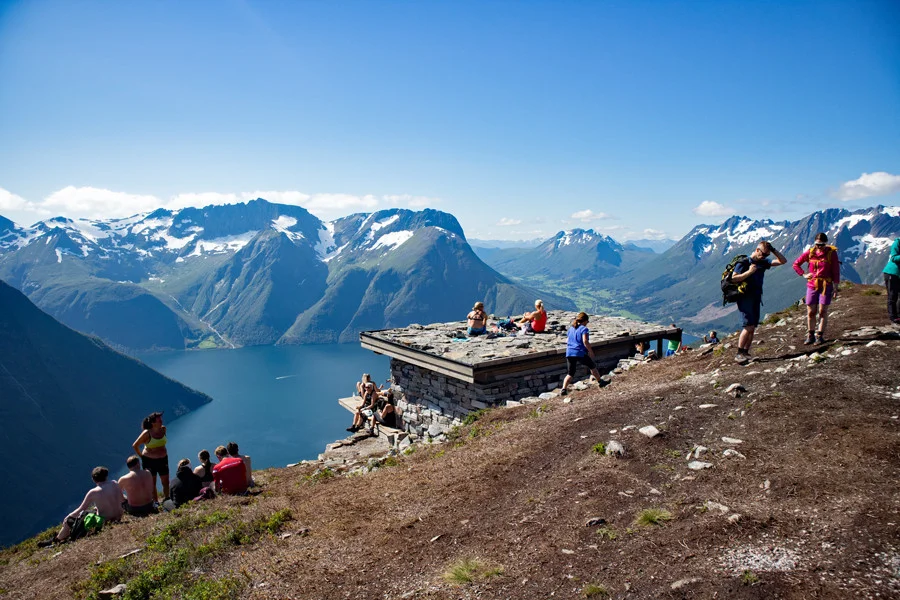 Oppe på Urkeeggen er det god sti som leder deg vestover mot Eigilbu gapahuk. Man har hele tiden panoramautsikt mot Hjørundfjorden, Stålberget og fjellene på andre siden.. Deretter fortsetter turen bratt nedover i Urkedalen. Her er det lurt med gode sko for det kan være både bløtt og glatt.