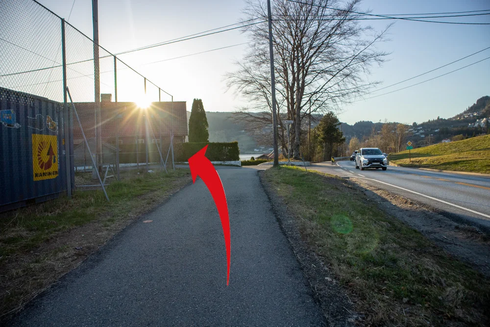 Følg Sineset veien utover noen 100 meter med fotballbanen på venstre side. Når veien svinger går det en sti rett frem mot en granskog. Følg denne stien inn i granskogen. Stien er tydelig og det er bare å gå rett frem. Etter noen hundre meter kommer du til en llavvo / leirplass.